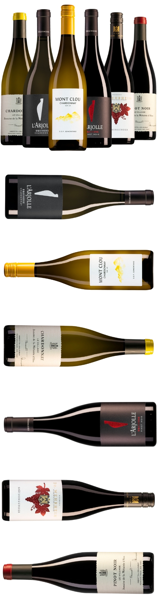 Voor liefhebbers van fijne, elegante wijnen: dit Chardonnay & Pinot Noir pakket brengt 6 prachtige varianten van twee iconische druivenrassen samen. Van frisse, romige witte Chardonnays tot verfijnde Pinot Noirs met subtiliteit en diepgang. Perfect voor diners, borrels of om nieuwe favorieten te ontdekken!