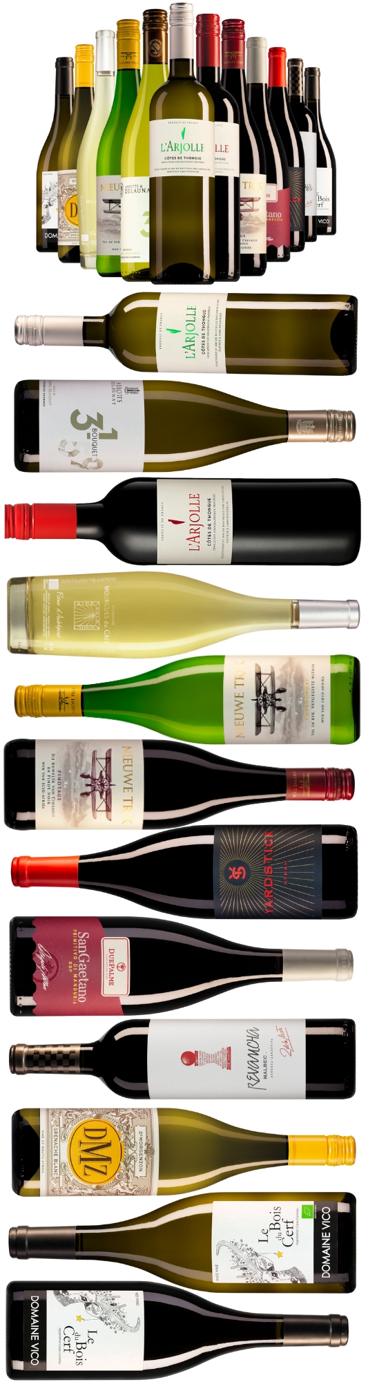 • 12 wijnen, ongekende variatie en kwaliteit